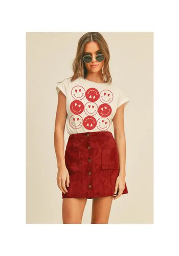 Heart Eyes Smiley Face Roll Up Sleeve Tee