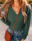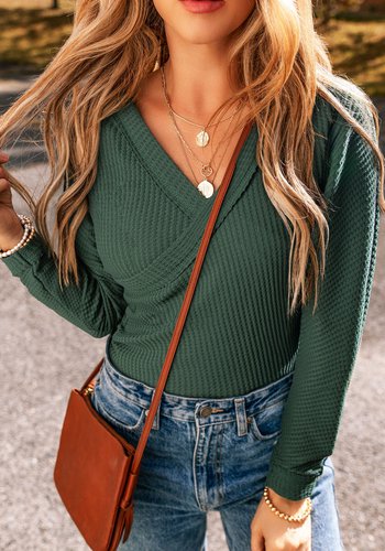 Waffle Knit Slim Fit Wrap V-Neck Bodysuit