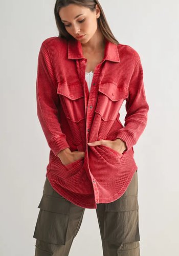 Waffle Knit Mineral Washed Button Down Jacket