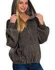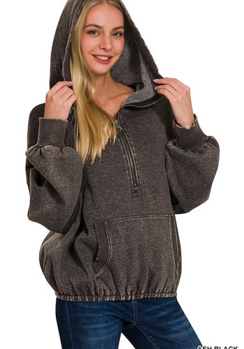 Washed Drawstring Half Zip Kangaroo Hoodie