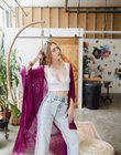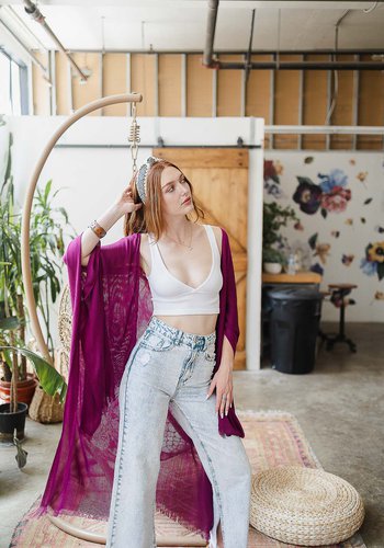 Open Grid Frayed Trim Kimono