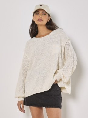 Mixed Stitch Oversized Sweater With Pocket