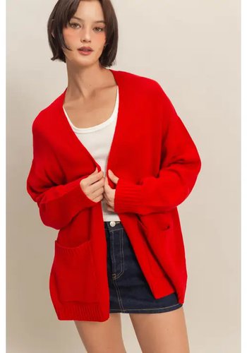 Oversized Open-Front Cardigan Sweater with Pockets