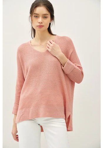 V-Neck Dolman Sleeve With Roll Cuff Sweater