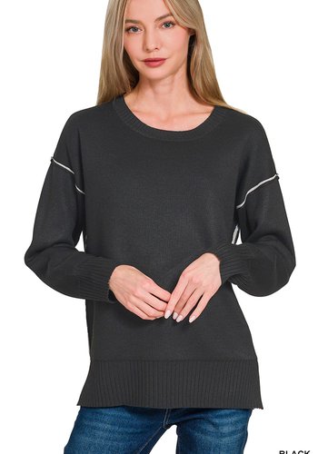 Round Neck Contrast Trim Sweater