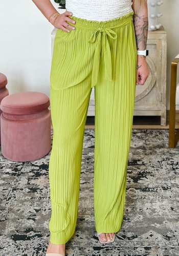 Pleated Wide Leg Paperbag Self Tie Pants