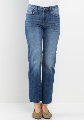 Mid Rise Straight Leg Jeans With Scissor Cut Hem