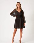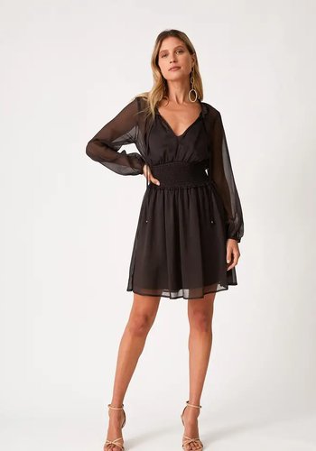 Sheer Tie Neck Long Sleeve Smocked Mini Dress