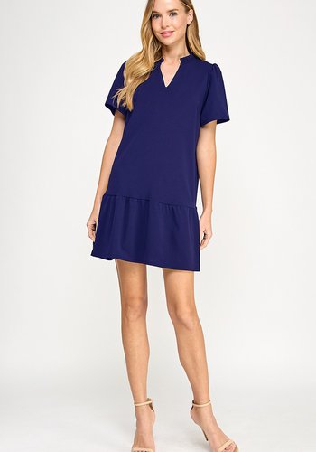 Short Sleeve V-Neck Dress With Ruffle Detail