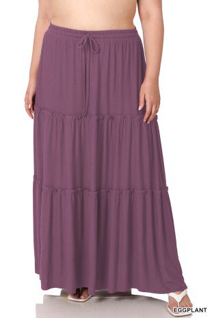 Tiered Ruffle Raw Hem Maxi Skirt