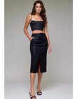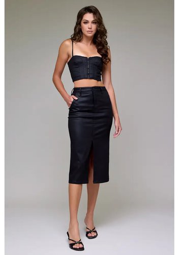Coated High Rise Front Slit Midi Skirt