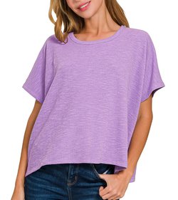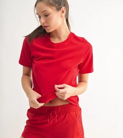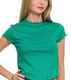Cotton Slub Lettuce Trimmed Cropped Tee