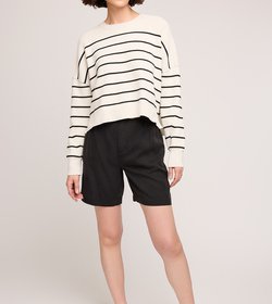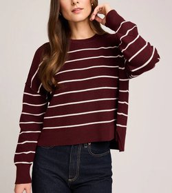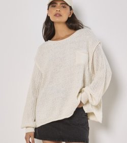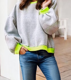 Banding Patchwork Puff Sleeve Loose Sweatshirt