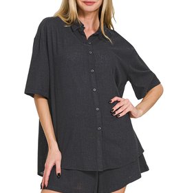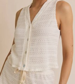 V-Neck Button Up Sleeveless Crochet Top & Shorts Set