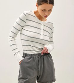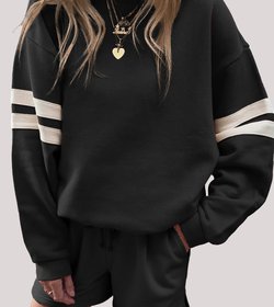 Stripe Sweatshirt & Drawstring Shorts 2 Piece Set