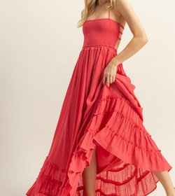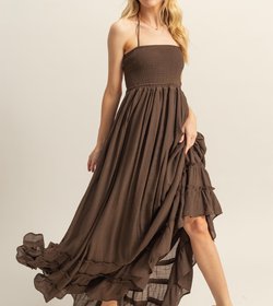 Halter Neck Smocked Tiered Hem Maxi Dress