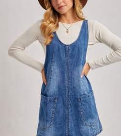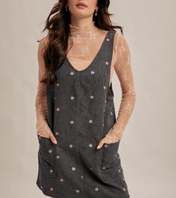 Floral Embroidered Corduroy Pinafore Overall Dress