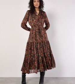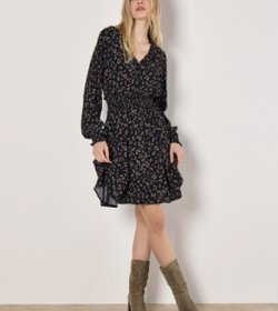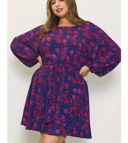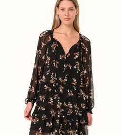 Flowy Floral Long Sleeve Tie Neck Mini Dress