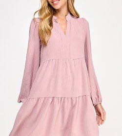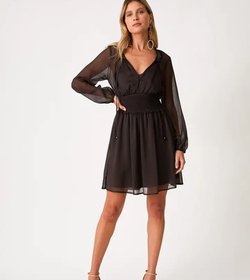Sheer Tie Neck Long Sleeve Smocked Mini Dress