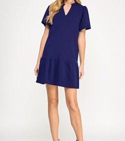 Short Sleeve V-Neck Dress With Ruffle Detail