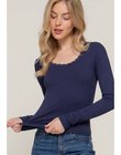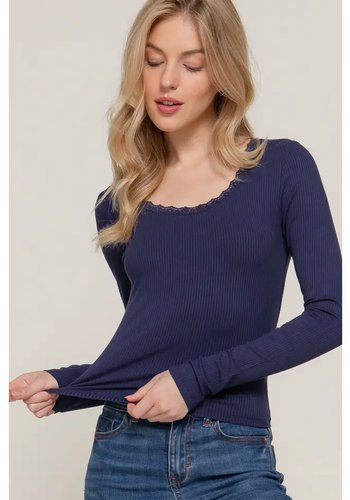 Long Sleeve Scoop Neck With Lace Trim Rib Knit Top