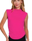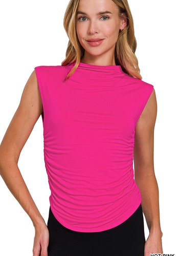 Double Layered Ruched Side Mock Neck Top