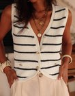 Stripe Buttoned V-Neck Slim Fit Sweater Vest