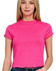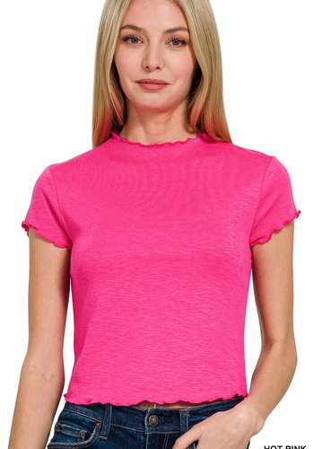 Cotton Slub Lettuce Trimmed Cropped Tee