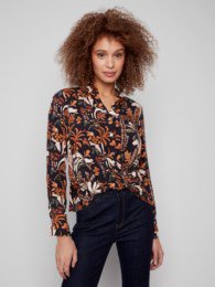 Printed Long Sleeve Top With Twisted Front & Buttons