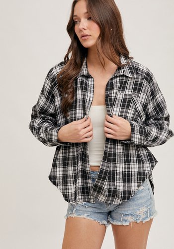 Button Down Dolphin Hem Plaid Shirt