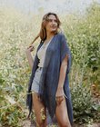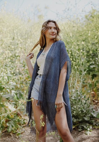 Pencil Stripe Frayed Trim Kimono