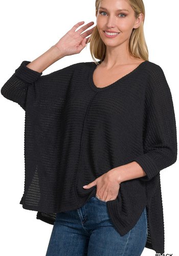3/4 Sleeve V-Neck Hi-Low Hem Sweater