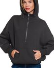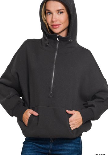 Fleece Elastic Hem Half Zip Kangaroo Pocket Hoodie