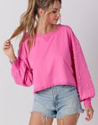 Round Neck Sweatshirt With Pearl Detail Sleeves