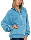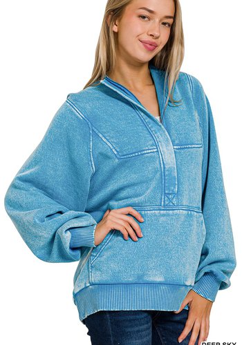 Acid Wash Fleece Oversized 1/4 Zip Kangaroo Hoodie