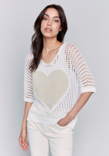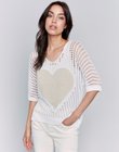 Fishnet 3/4 Dolman Sleeve Sweater With Lurex Heart