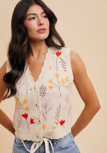 Floral Pattern Scallop Edge Detail Sweater Vest