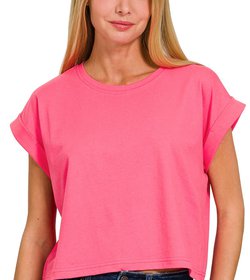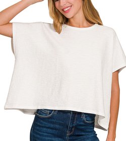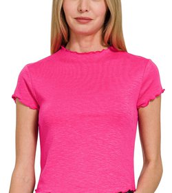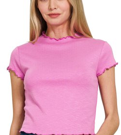 Cotton Slub Lettuce Trimmed Cropped Tee