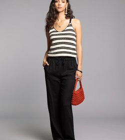 Ribbed Ruffle Trim Sleeveless Stripe Top