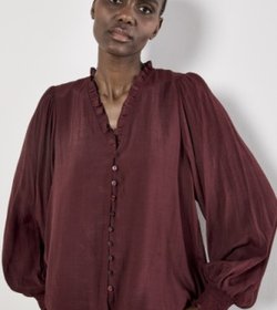 Ruffle Smock Cuff Boho Blouse