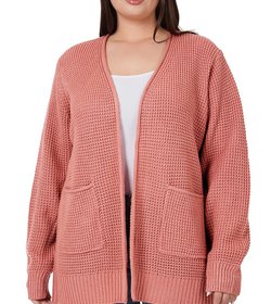 Relaxed Fit Waffle Open Cardigan Sweater
