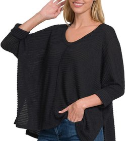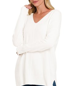 3/4 Sleeve V-Neck Hi-Low Hem Sweater