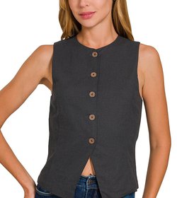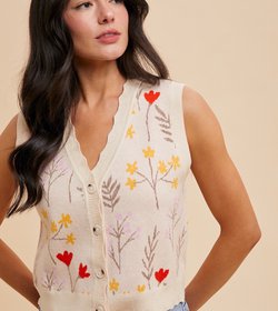 Floral Pattern Scallop Edge Detail Sweater Vest
