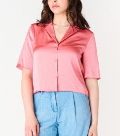Short Sleeve Notch Collar Blouse