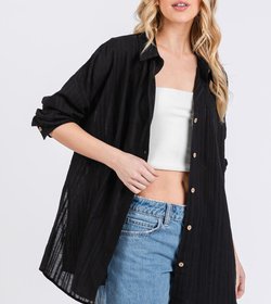 Textured Long Sleeve Tunic Beach Shirt